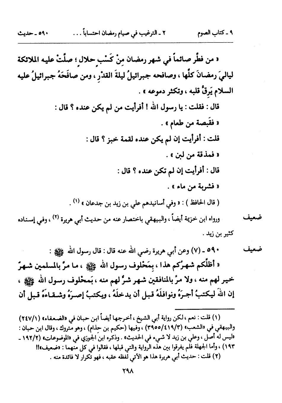 590 - (7) [ضعيف] وعن أبي هريرة رضي الله عنه قال: قال رسول الله - صلى الله عليه وسلم -: