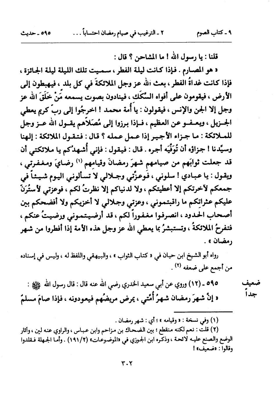 595 - (12) [ضعيف جداً] وروي عن أبي سعيد الخدري رضي الله عنه قال: قال رسول الله - صلى الله عليه وسلم -: