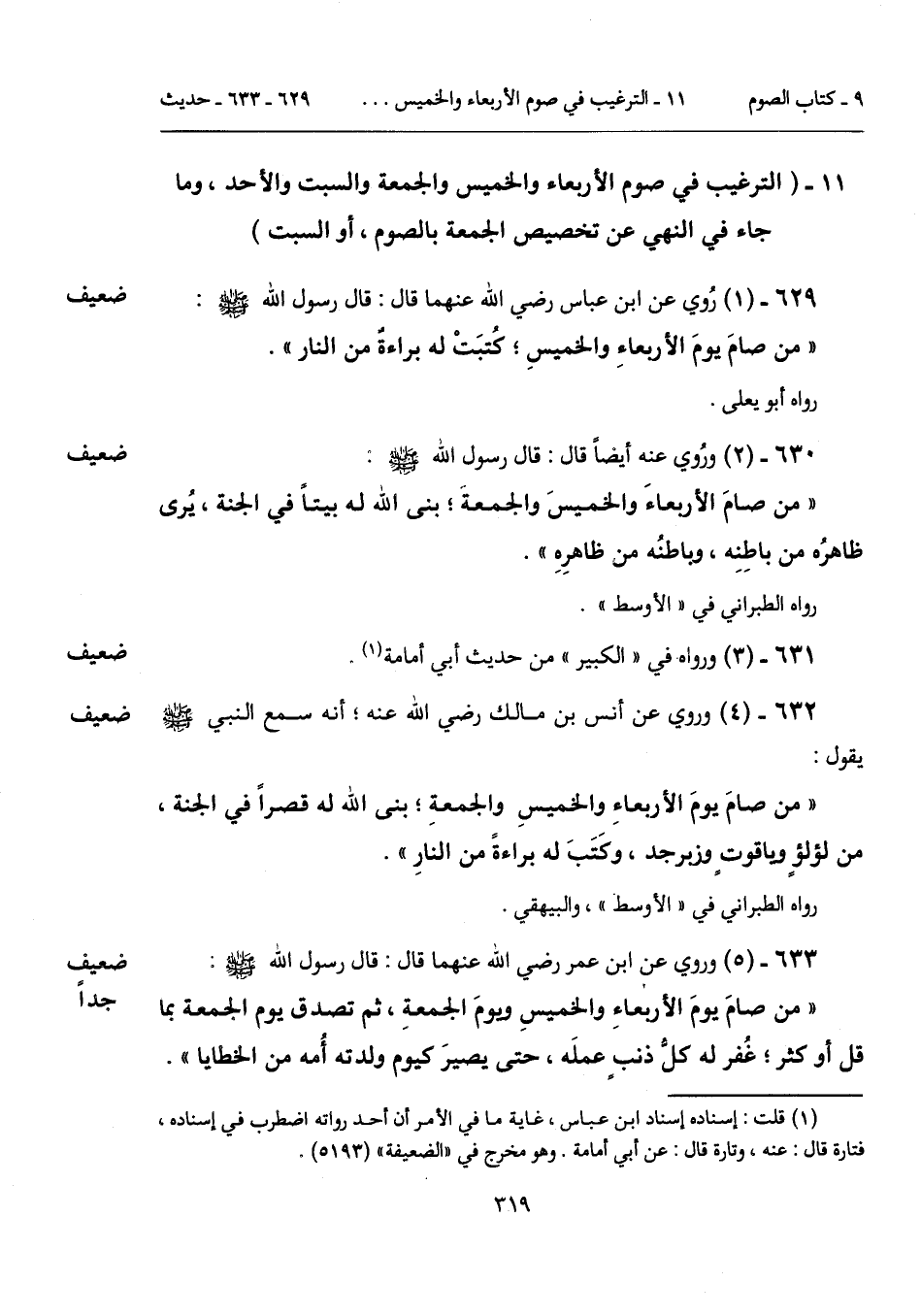 11 - (الترغيب في صوم الأربعاء والخميس والجمعة والسبت والأحد، وما جاء في النهي عن تخصيص الجمعة بالصوم، أو السبت).