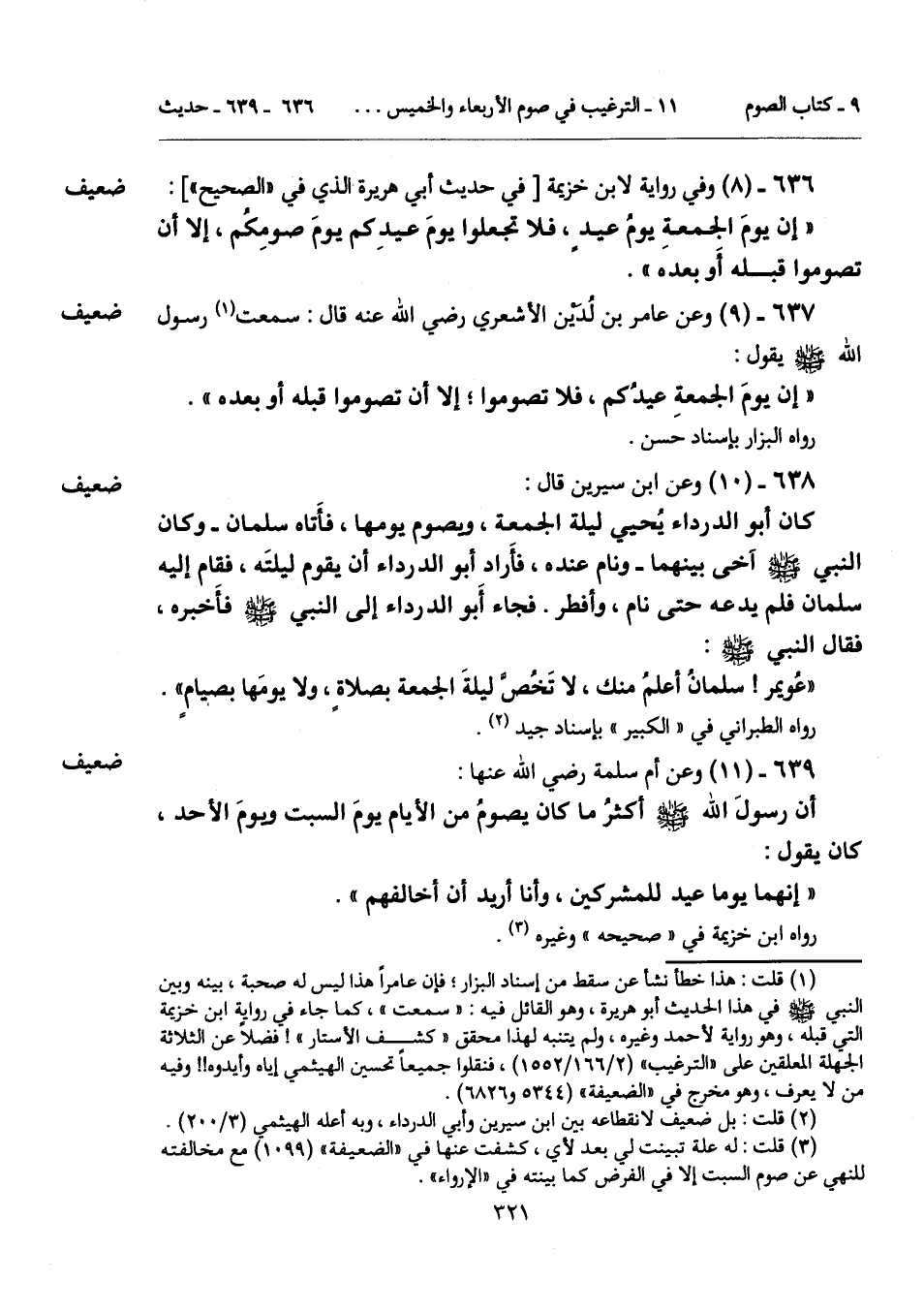 (¬3) قلت: له علة تبينت لي بعد لأي، كشفت عنها في "الضعيفة" (1099) مع مخالفته للنهي عن صوم السبت إلا في الفرض كما بينته في "الإرواء".