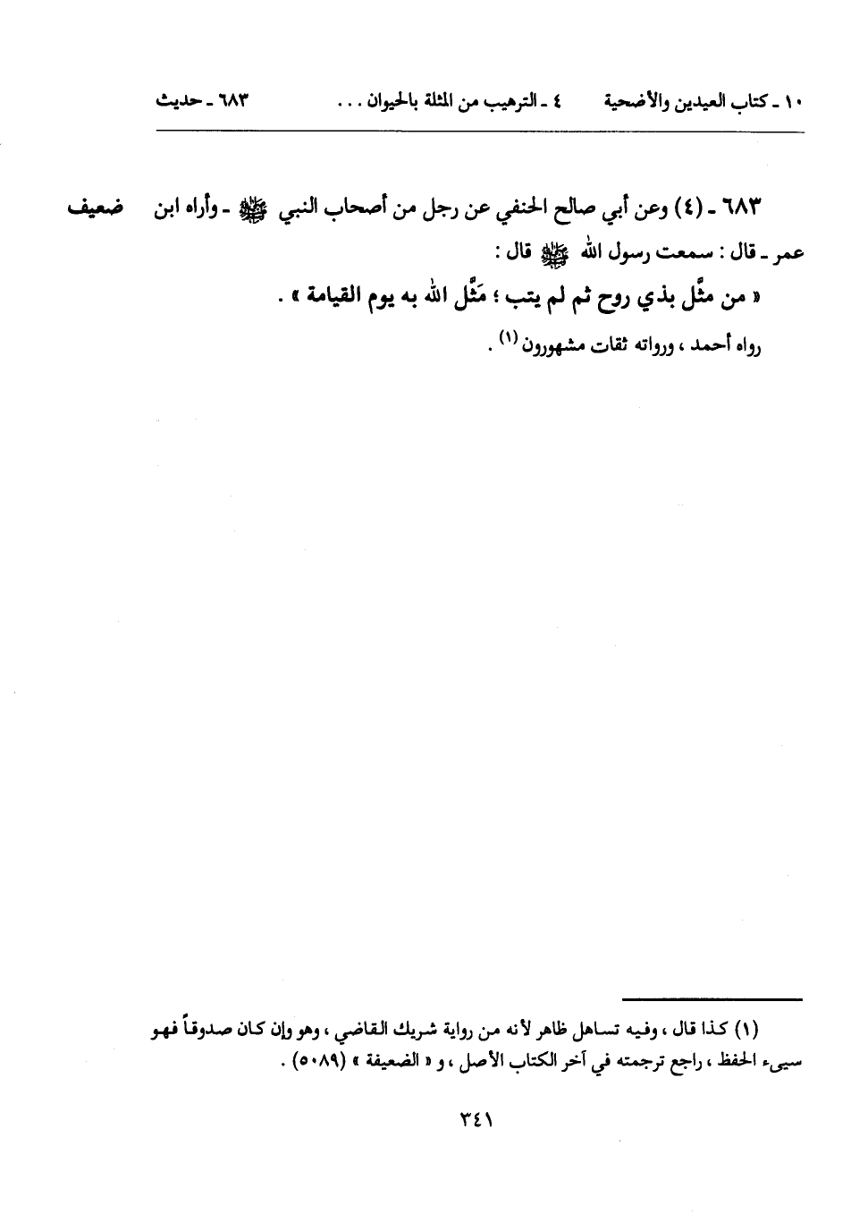 683 - (4) [ضعيف] وعن أبي صالح الحنفي عن رجل من أصحاب النبي - صلى الله عليه وسلم -وأراه ابن عمر- قال: سمعت رسول الله - صلى الله عليه وسلم - قال:
