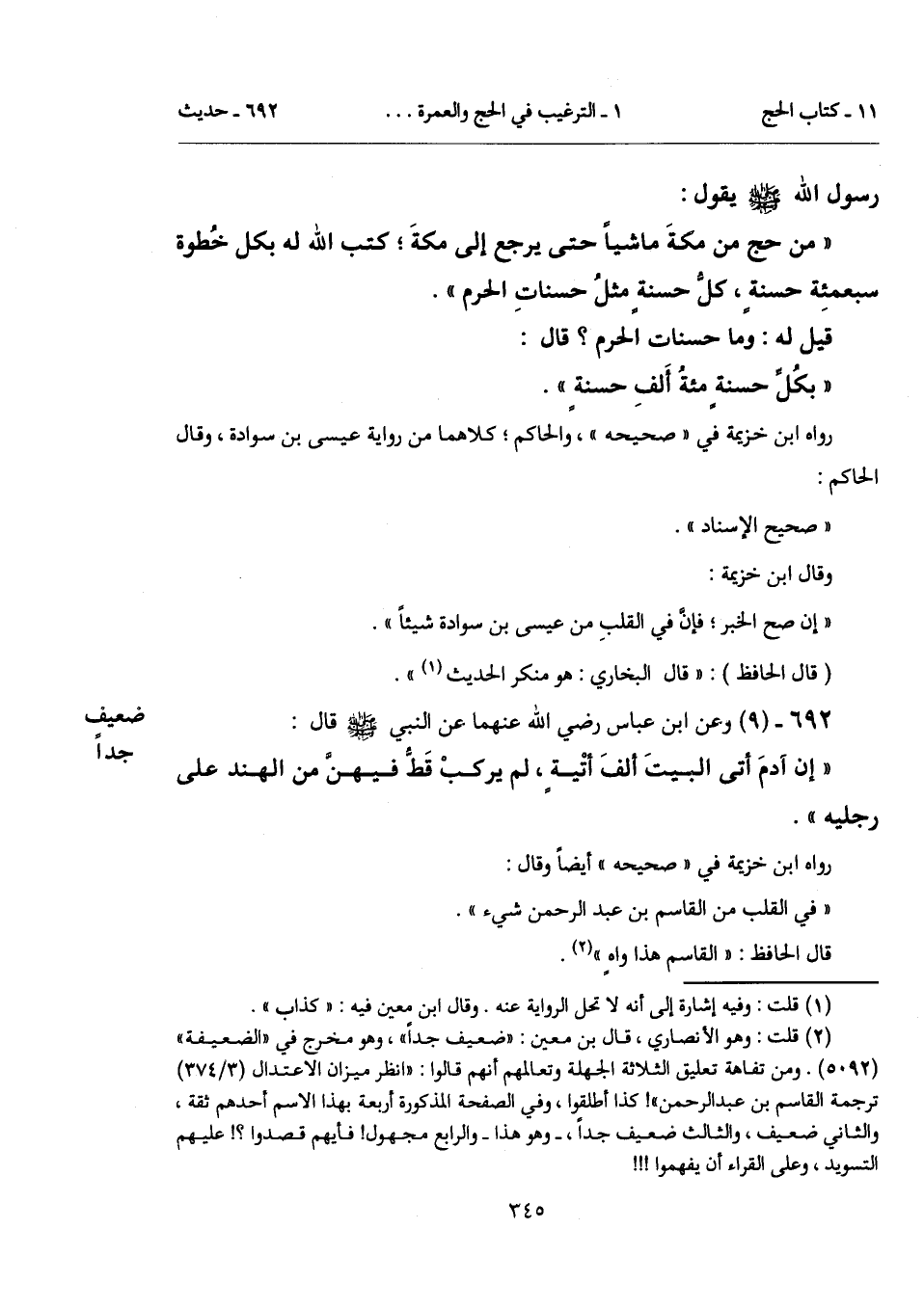 (¬2) قلت: وهو الأنصاري، قال بن معين: "ضعيف جداً"، وهو مخرج في "الضعيفة" (5092). ومن تفاهة تعليق الثلاثة الجهلة وتعالمهم أنهم قالوا: "انظر ميزان الاعتدال (3/ 374) ترجمة القاسم بن عبد الرحمن"! كذا أطلقوا، وفي الصفحة المذكورة أربعة بهذا الاسم أحدهم ثقة، والثاني ضعيف، والثالث ضعيف جداً، -وهو هذا- والرابع مجهول! فأيهم قصدوا؟! عليهم التسويد، وعلى القراء أن يفهموا!!!