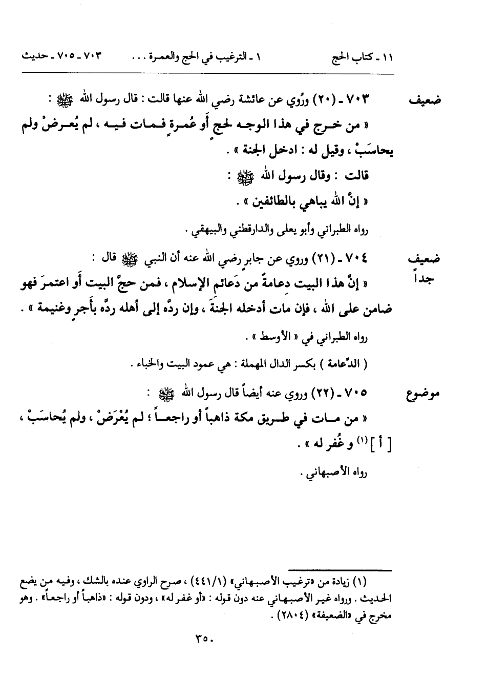 703 - (20) [ضعيف] ورُوي عن عائشة رضي الله عنها قالت: قال رسول الله - صلى الله عليه وسلم -: