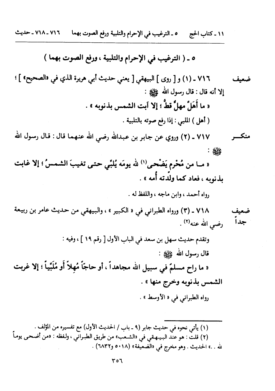 "ما راح مسلمٌ في سبيل الله مجاهداً، أو حاجّاً مُهِلاً أَو مُلَبِّياً؛ إلا غربت الشمس بذنوبه وخرج منها".