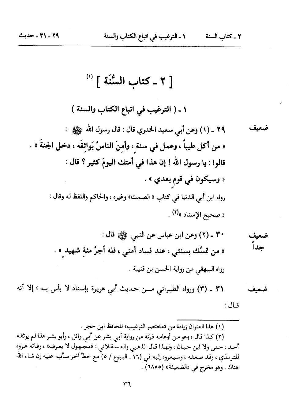 1 - (الترغيب في اتباع الكتاب والسنة).