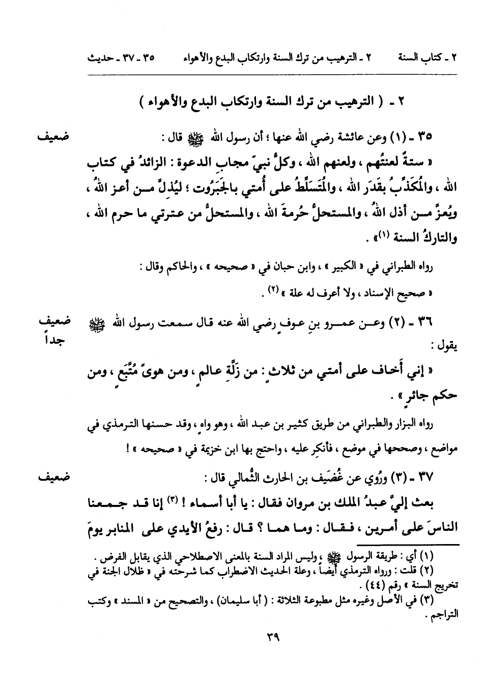 2 - (الترهيب من ترك السنة وارتكاب البدع والأهواء).