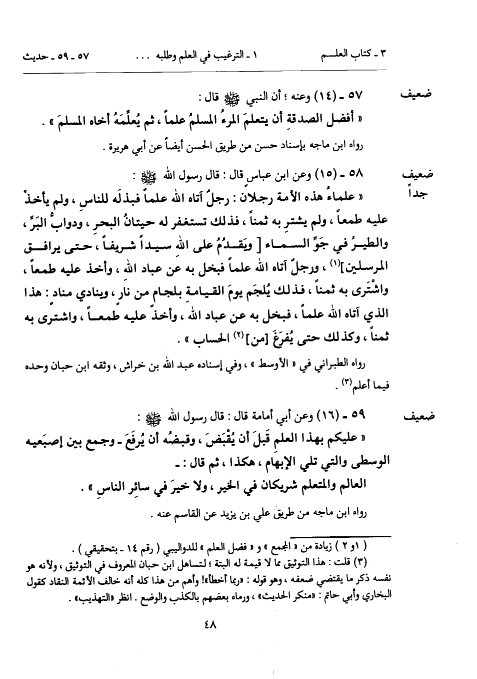 59 - (16) [ضعيف] وعن أبي أمامة قال: قال رسول الله - صلى الله عليه وسلم -: