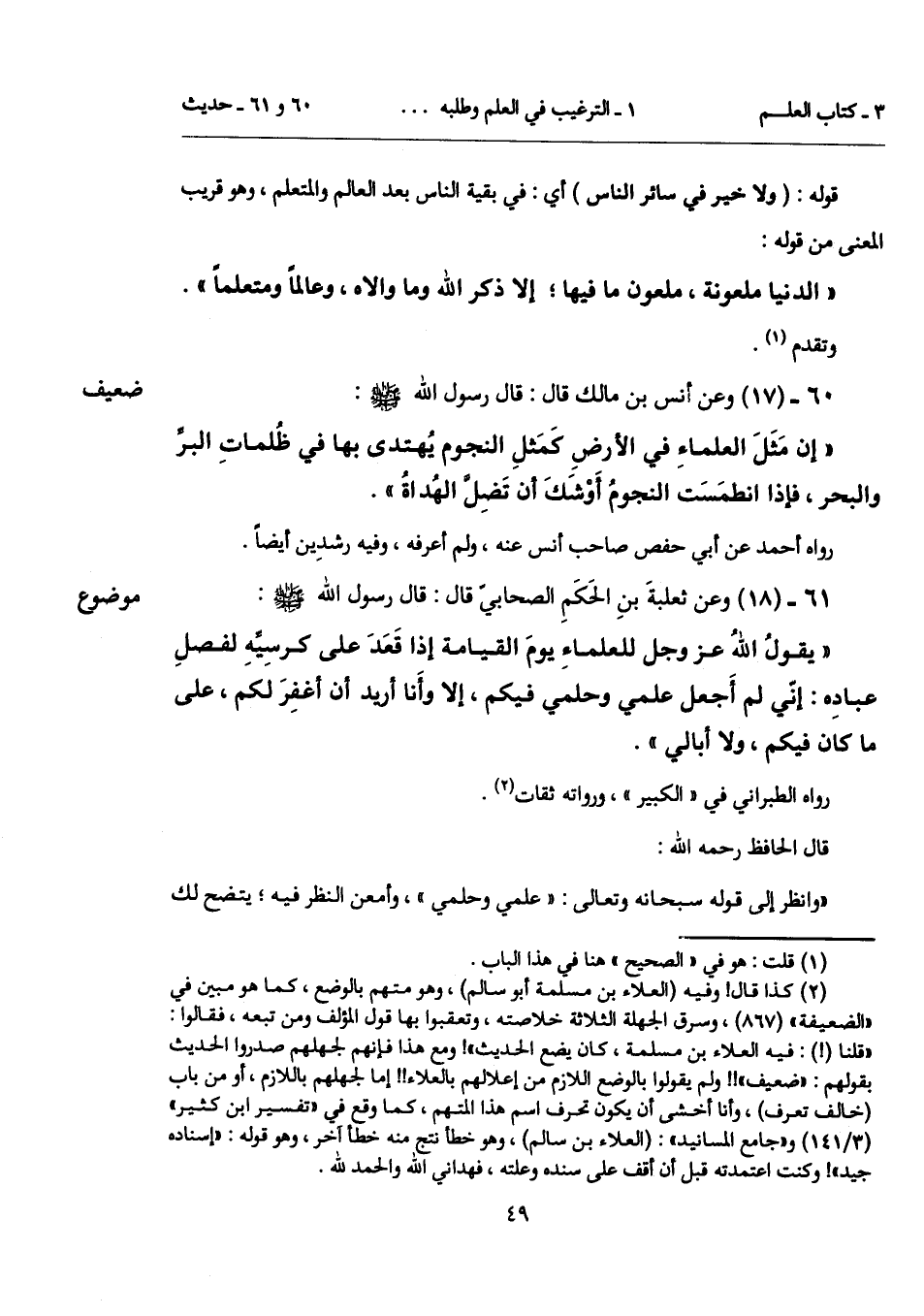 61 - (18) [موضوع] وعن ثعلبةَ بنِ الحَكَمِ الصحابيّ قال: قال رسول الله - صلى الله عليه وسلم -: