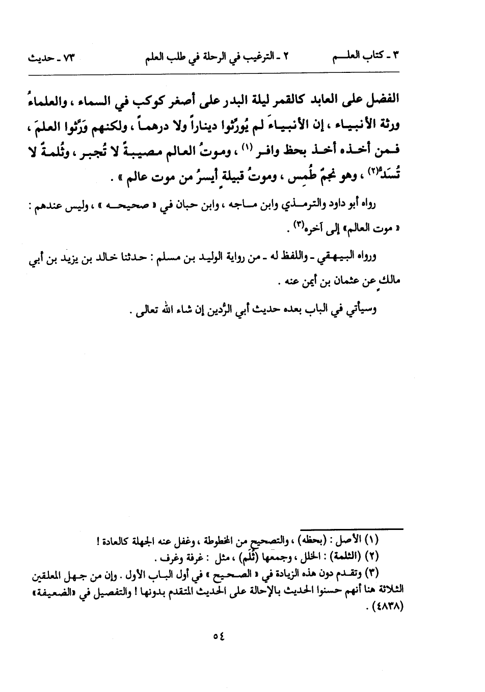 (¬3) وتقدم دون هذه الزيادة في "الصحيح" في أول الباب الأول. وإن من جهل المعلقين الثلاثة هنا أنهم حسنوا الحديث بالإحالة على الحديث المتقدم بدونها! والتفصيل في "الضعيفة" (4838).