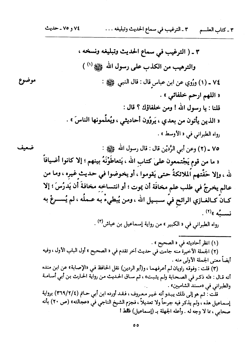 3 - (الترغيب في سماع الحديث وتبليغه ونسخه، والترهيب من الكذب على رسول الله - صلى الله عليه وسلم - (¬1))