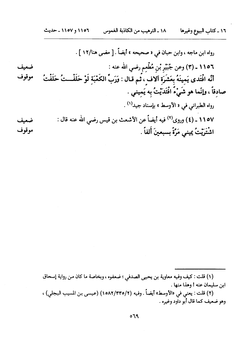1156 - (3) [ضعيف موقوف] وعن جُبَيْرِ بْنِ مُطْعِمٍ رضي الله عنه: