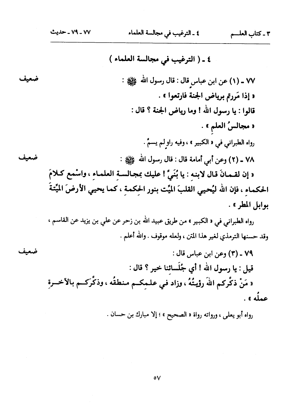77 - (1) [ضعيف] عن ابن عباسٍ قال: قال رسول - صلى الله عليه وسلم -: