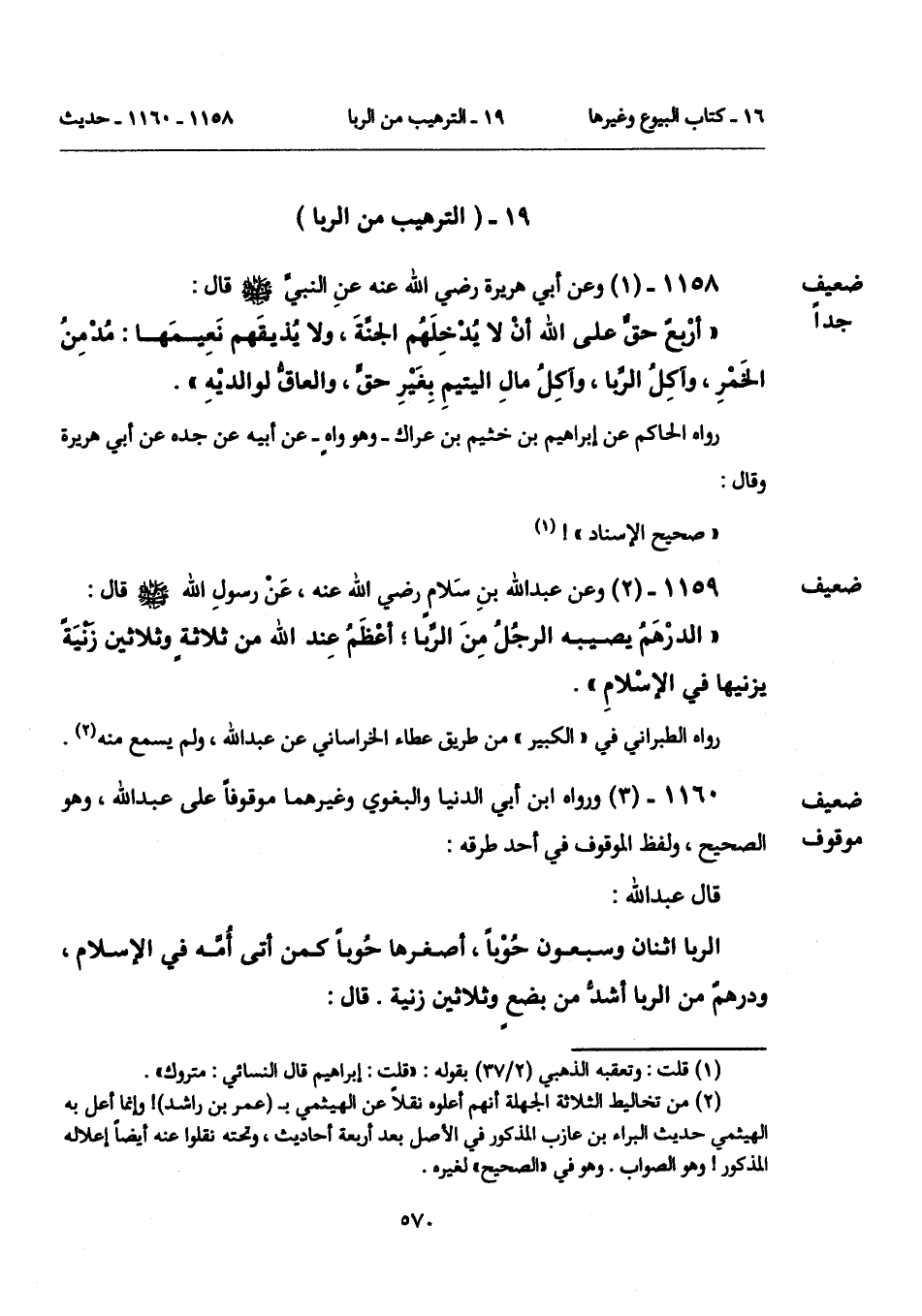 1158 - (1) [ضعيف جداً] وعن أبي هريرة رضي الله عنه عنِ النبيِّ - صلى الله عليه وسلم - قال: