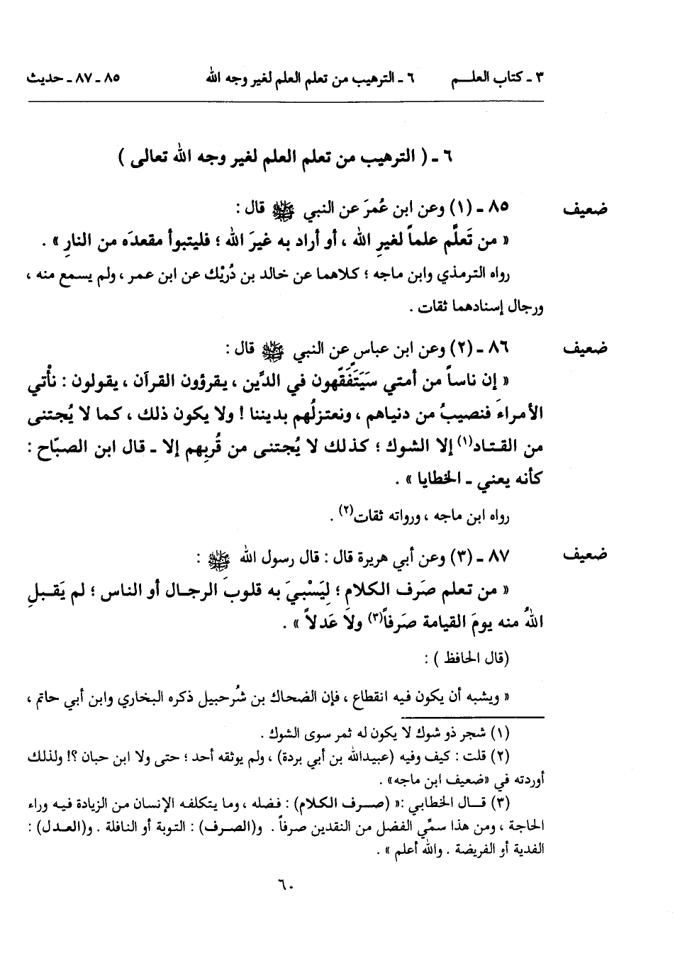 6 - (الترهيب من تعلم العلم لغير وجه الله تعالى).