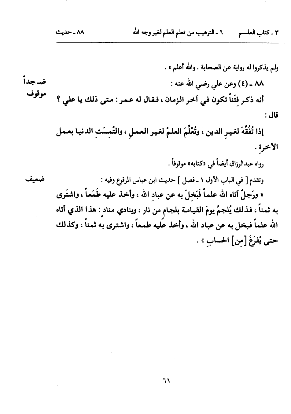 88 - (4) [ضعيف جداً موقوف] وعن علي رضي الله عنه: