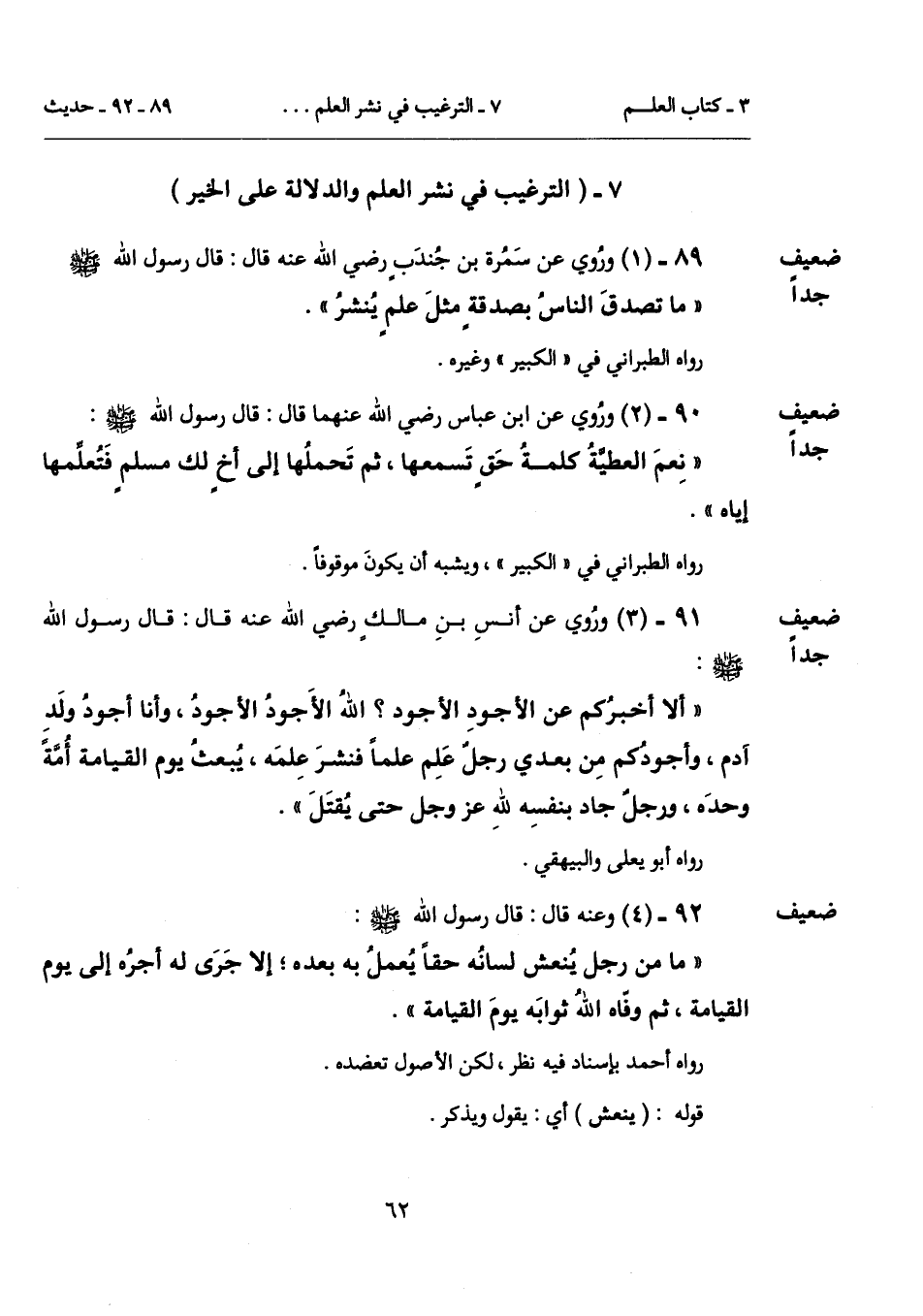 7 - (الترغيب في نشر العلم والدلالة على الخير).