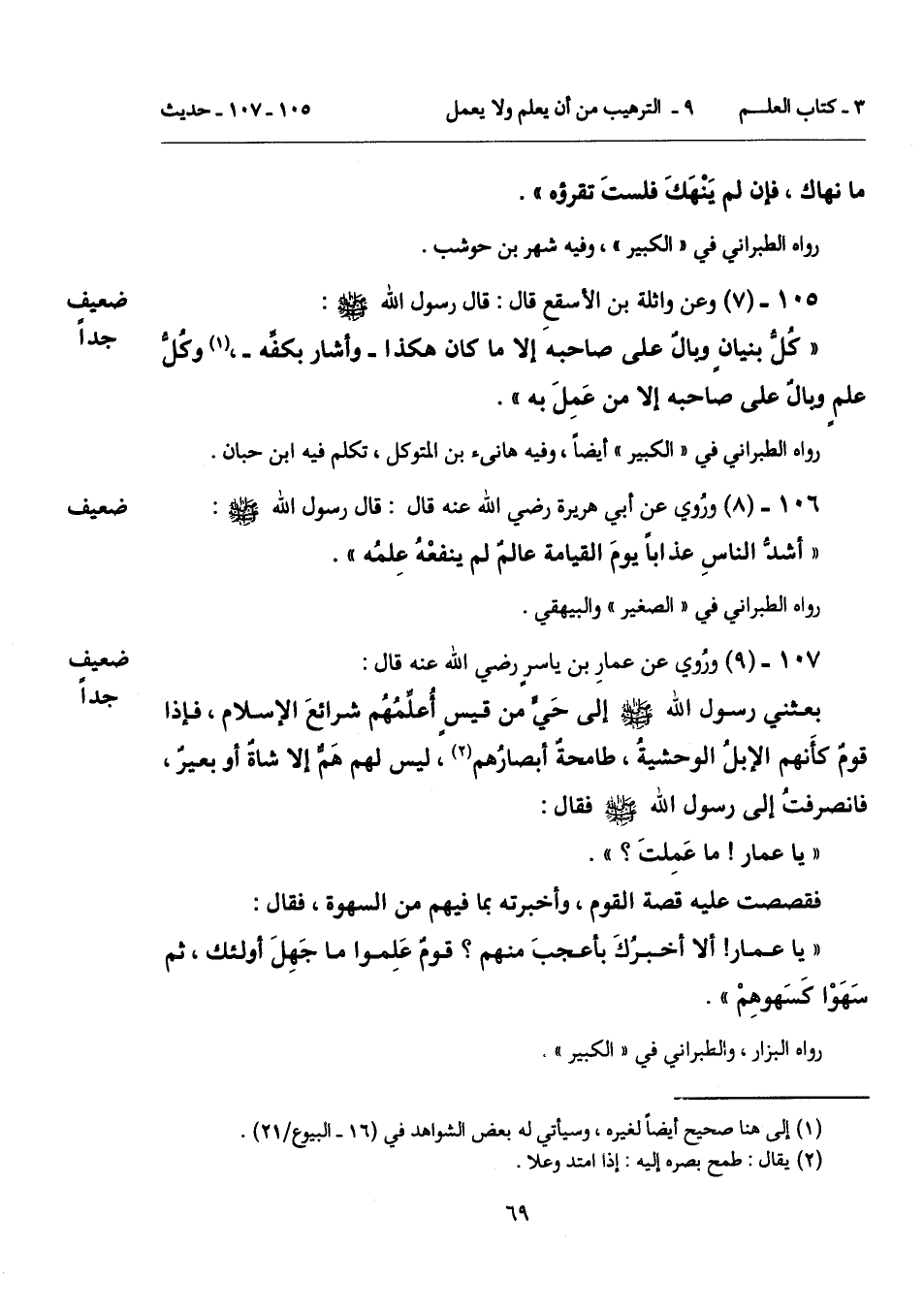 105 - (7) [ضعيف جداً] وعن واثلة بن الأسقعِ قال: قال رسول الله - صلى الله عليه وسلم -: