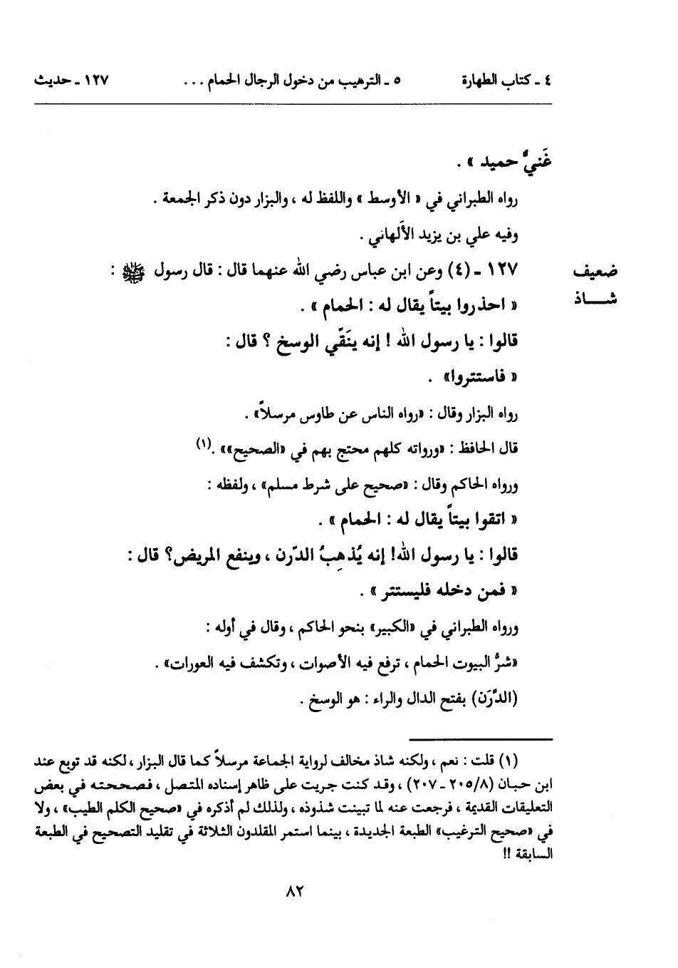 127 - (4) [ضعيف شاذ] وعن ابن عباس رضي الله عنهما قال: قال رسول - صلى الله عليه وسلم -: