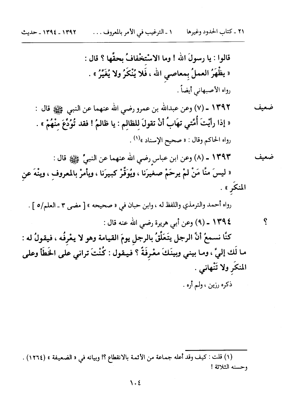 1392 - (7) [ضعيف] وعن عبد الله بن عمرو رضي الله عنهما عن النبي - صلى الله عليه وسلم - قال: