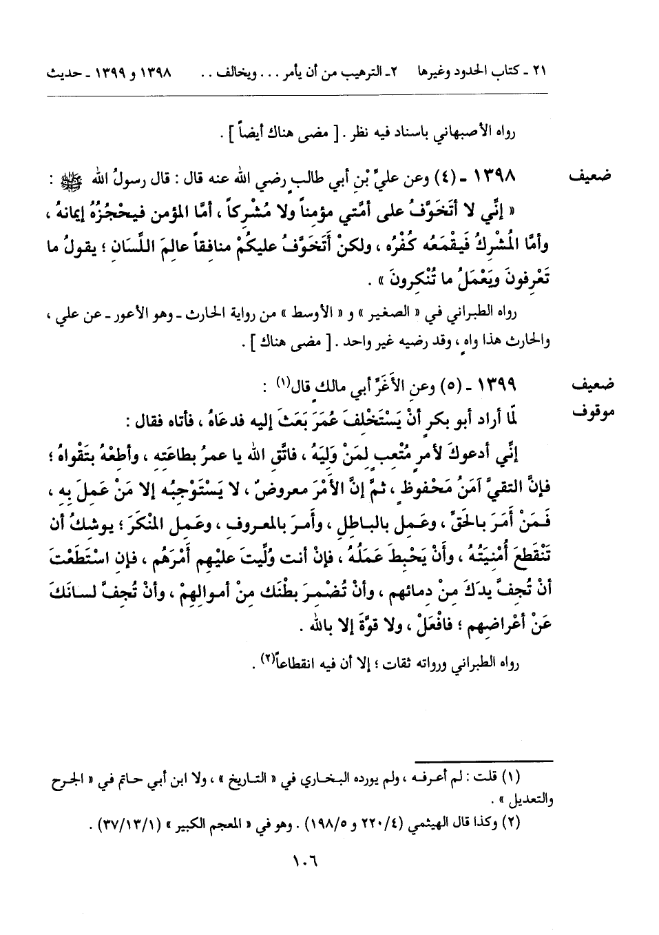 1399 - (5) [ضعيف موقوف] وعنِ الأَغَرِّ أبي مالكٍ قال (¬1):