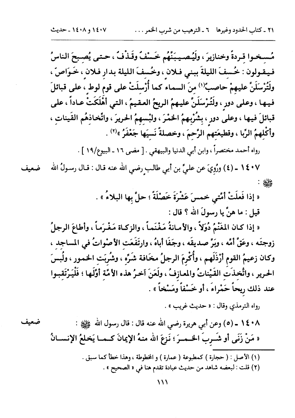 1408 - (5) [ضعيف] وعن أبي هريرة رضي الله عنه قال: قال رسول الله - صلى الله عليه وسلم -: