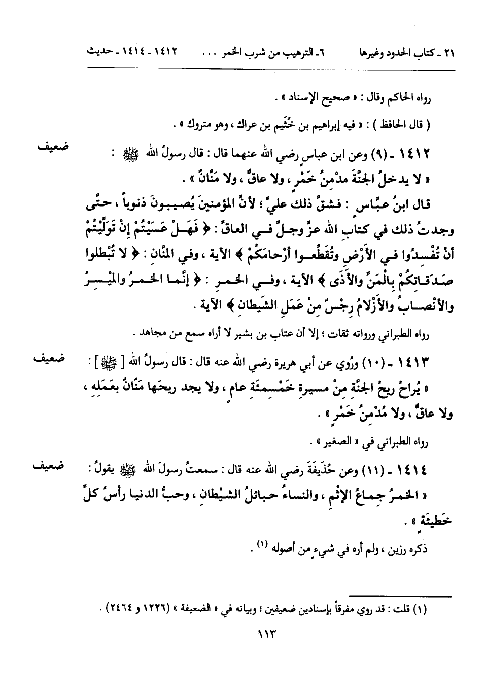 1412 - (9) [ضعيف] وعن ابن عباسٍ رضي الله عنهما قال: قال رسولُ الله - صلى الله عليه وسلم -: