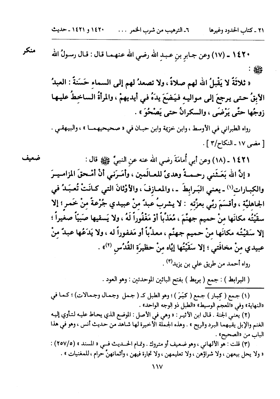 1420 - (17) [منكر] وعن جابرِ بنِ عبدِ الله رضي الله عنهما قال: قال رسولُ الله - صلى الله عليه وسلم -: