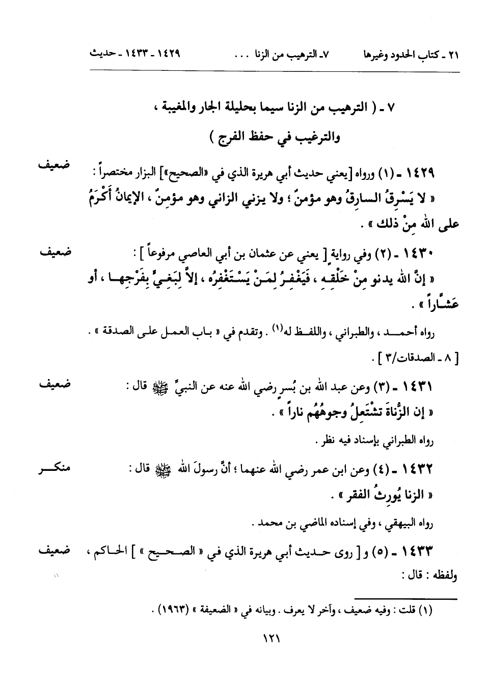 7 - (الترهيب من الزنا سيما بحليلة الجار والمغيبة، والترغيب في حفظ الفرج).