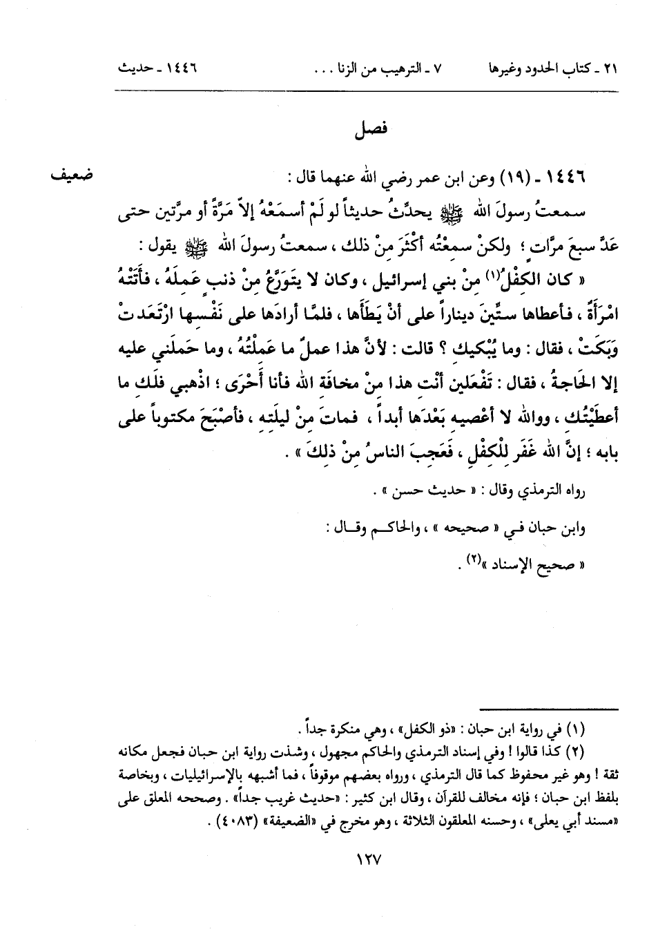 1446 - (19) [ضعيف] وعن عمر رضي الله عنهما قال: