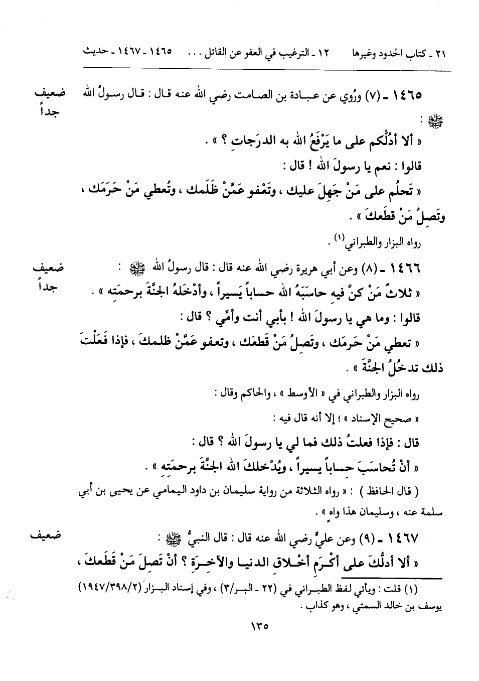 1465 - (7) [ضعيف جداً] ورُوي عن عبادة بن الصامت رضي الله عنه قال: قال رسولُ الله - صلى الله عليه وسلم -: