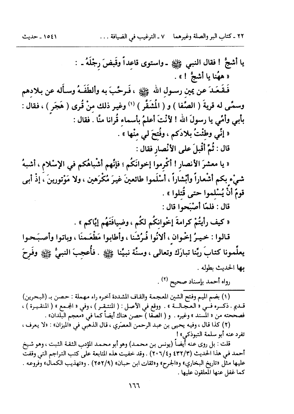 يا أشجُّ! فقال النبي - صلى الله عليه وسلم -واستوى قاعِداً وقَبضَ رِجْلَهُ-: