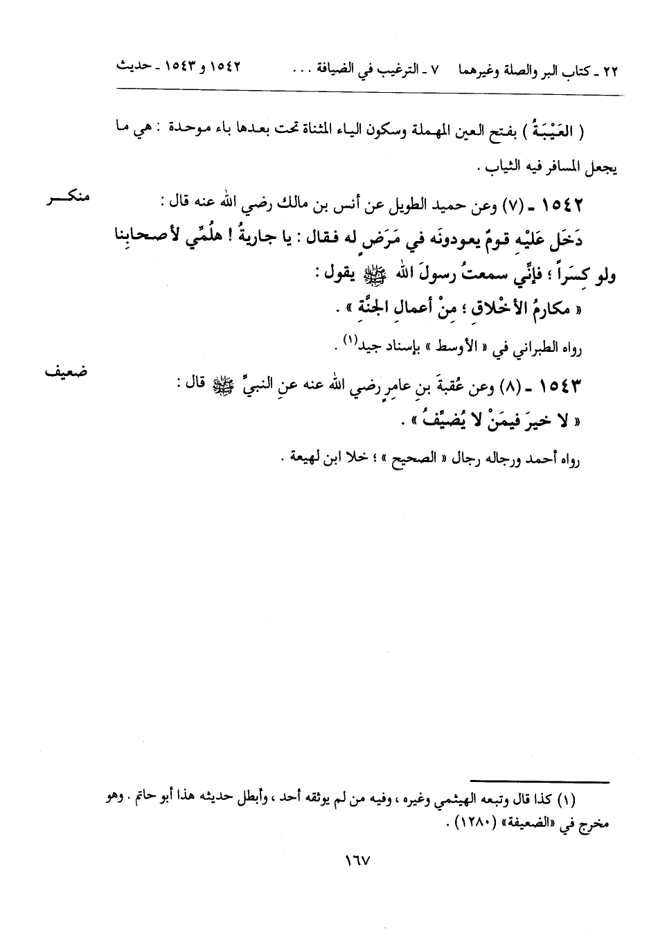 1543 - (8) [ضعيف] وعن عُقبةَ بنِ عامِرٍ رضي الله عنه عنِ النبيِّ - صلى الله عليه وسلم - قال: