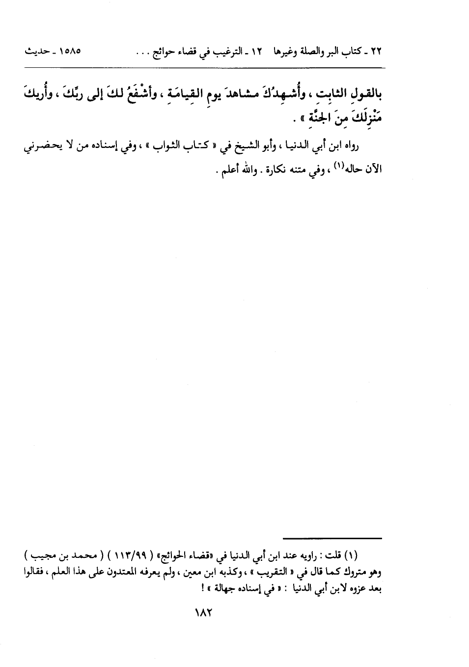 (¬1) قلت: راويه عند ابن أبي الدنيا في "قضاء الحوائج" (99/ 113) (محمد بن مجيب) وهو متروك كما قال في "التقريب"، وكذبه ابن معين، ولم يعرفه المعتدون على هذا العلم، فقالوا بعد عزوه لابن أبي الدنيا: "في إسناده جهالة"!