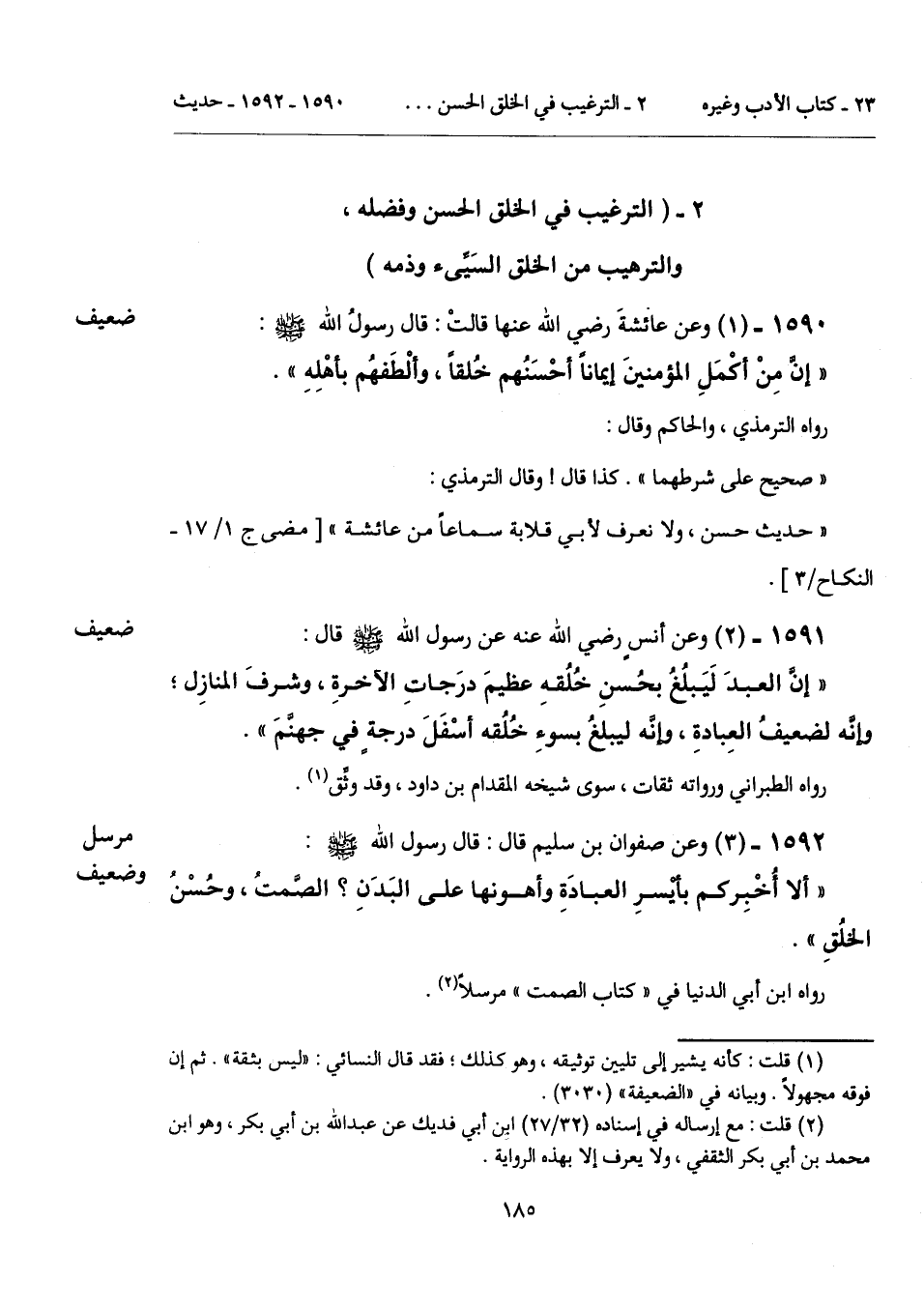 2 - (الترغيب في الخلق الحسن وفضله، والترهيب من الخلق السَيِّىء وذمه).