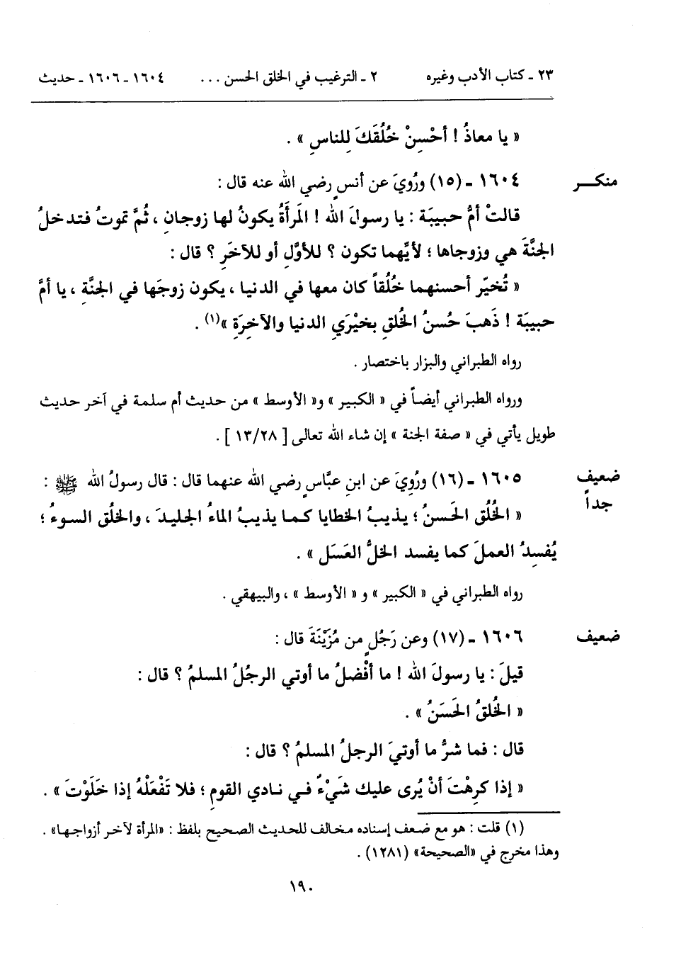 1605 - (16) [ضعيف جداً] ورُوِيَ عن ابنِ عبَّاسٍ رضي الله عنهما قال: قال رسولُ الله - صلى الله عليه وسلم -: