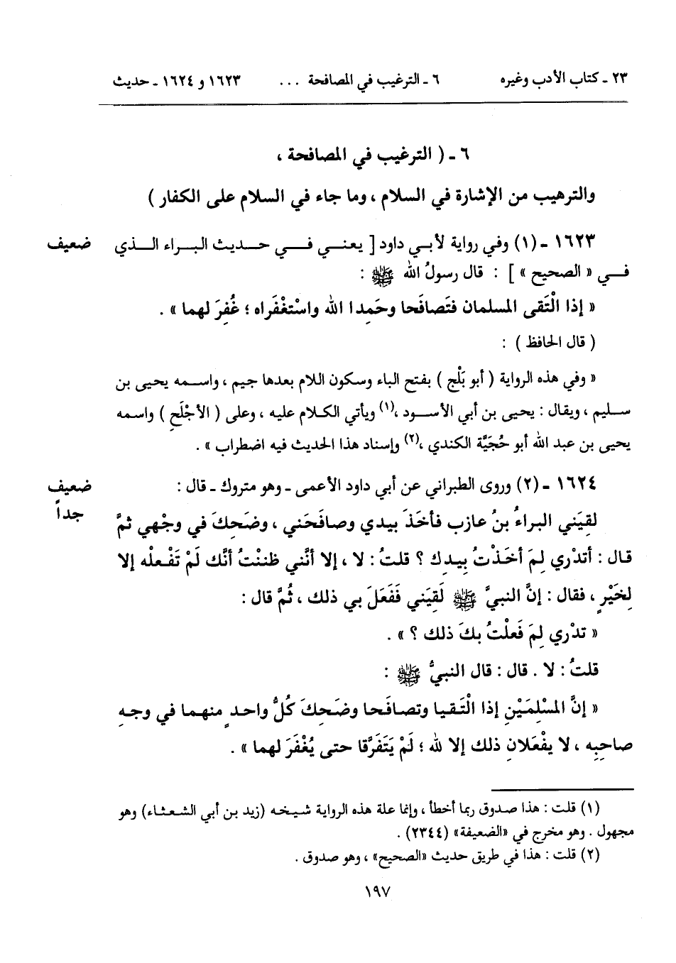 6 - (الترغيب في المصافحة، والترهيب من الإشارة في السلام، وما جاء في السلام على الكفار).