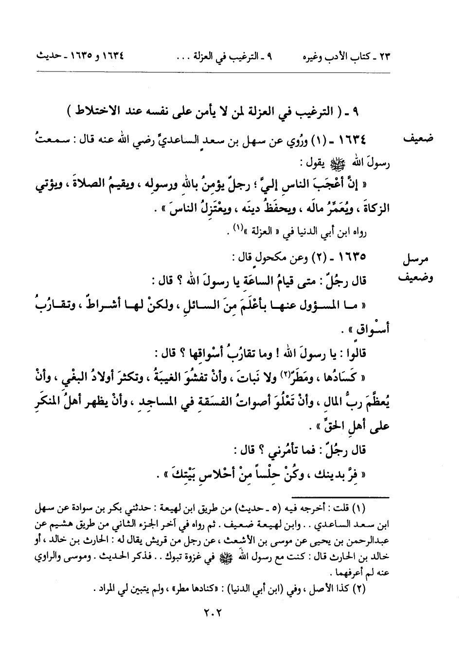 9 - (الترغيب في العزلة لمن لا يأمن على نفسه عند الاختلاط).