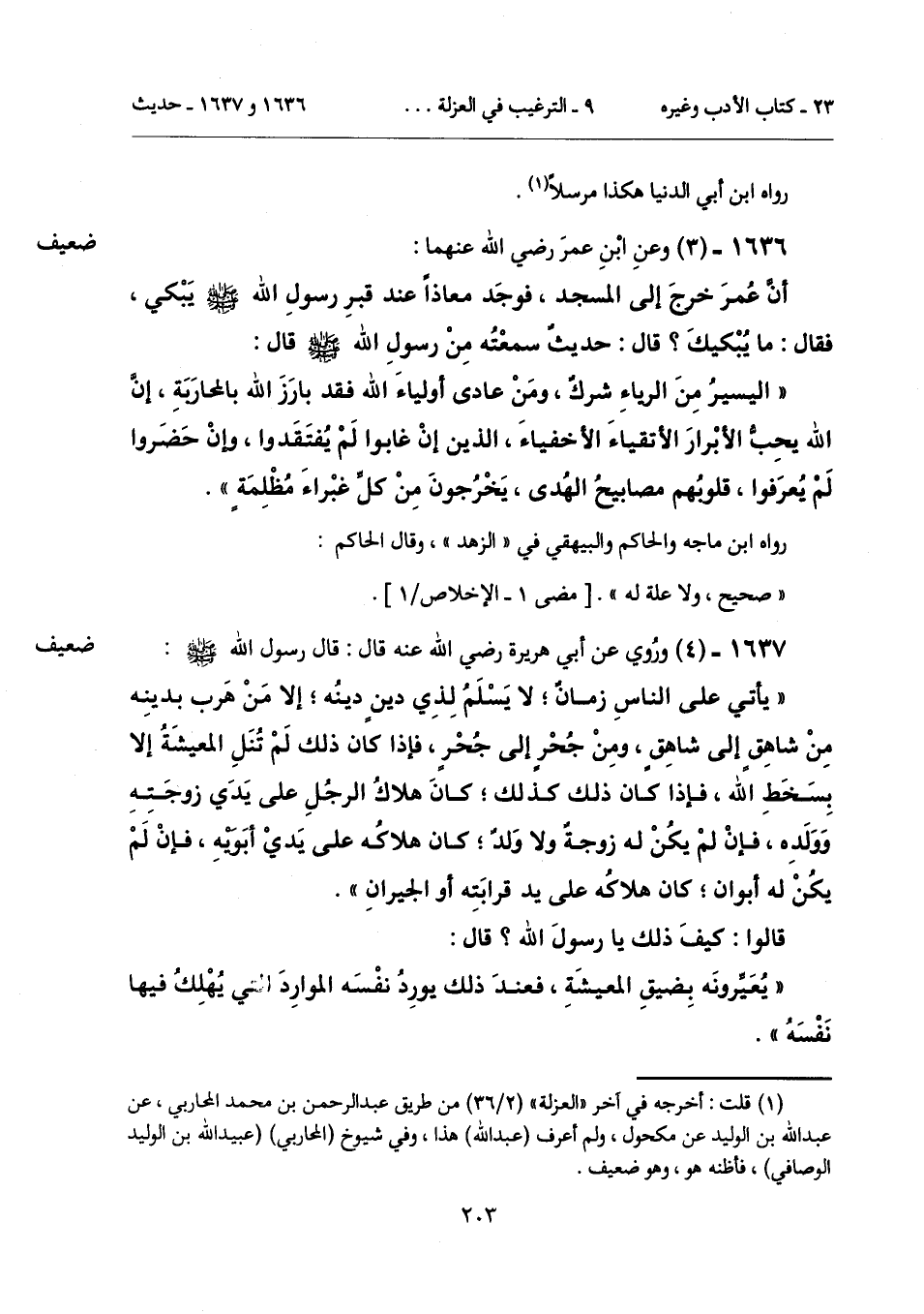1636 - (3) [ضعيف] وعنِ ابْنِ عمرَ رضي الله عنهما: