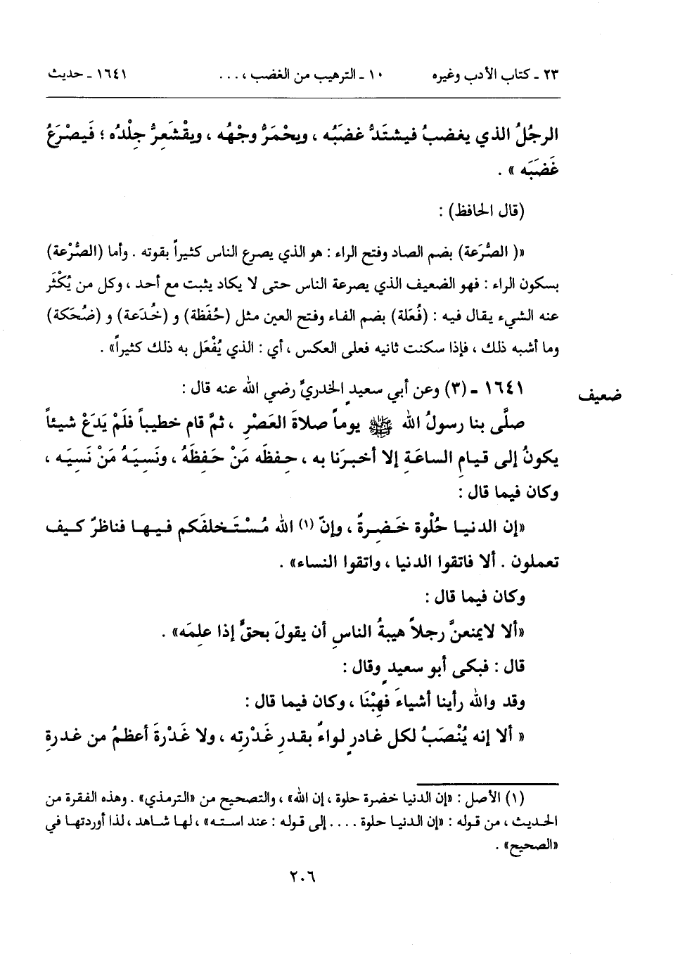(¬1) الأصل: "إن الدنيا خضرة حلوة، إن الله"، والتصحيح من "الترمذي". وهذه الفقرة من الحديث، من قوله: "إن الدنيا حلوة. . . . إلى قوله: عند استه"، لها شاهد، لذا أوردتها في "الصحيح".