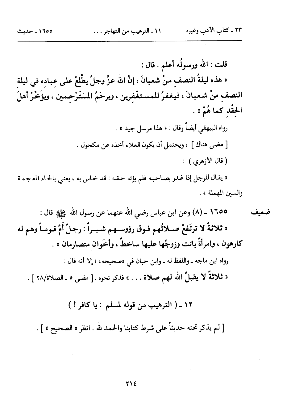 12 - (الترهيب من قوله لمسلم: يا كافر!).