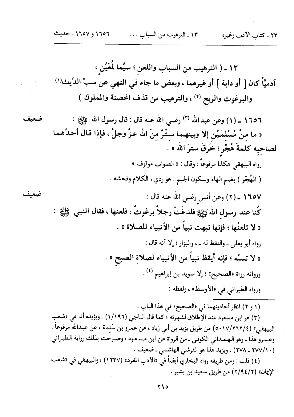13 - (الترهيب من السباب واللعنِ؛ سيَّما لمُعَيَّنٍ، آدميّاً كان [أو دابة] أو غيرهما، وبعض ما جاء في النهي عن سبِّ الدِّيك (1)