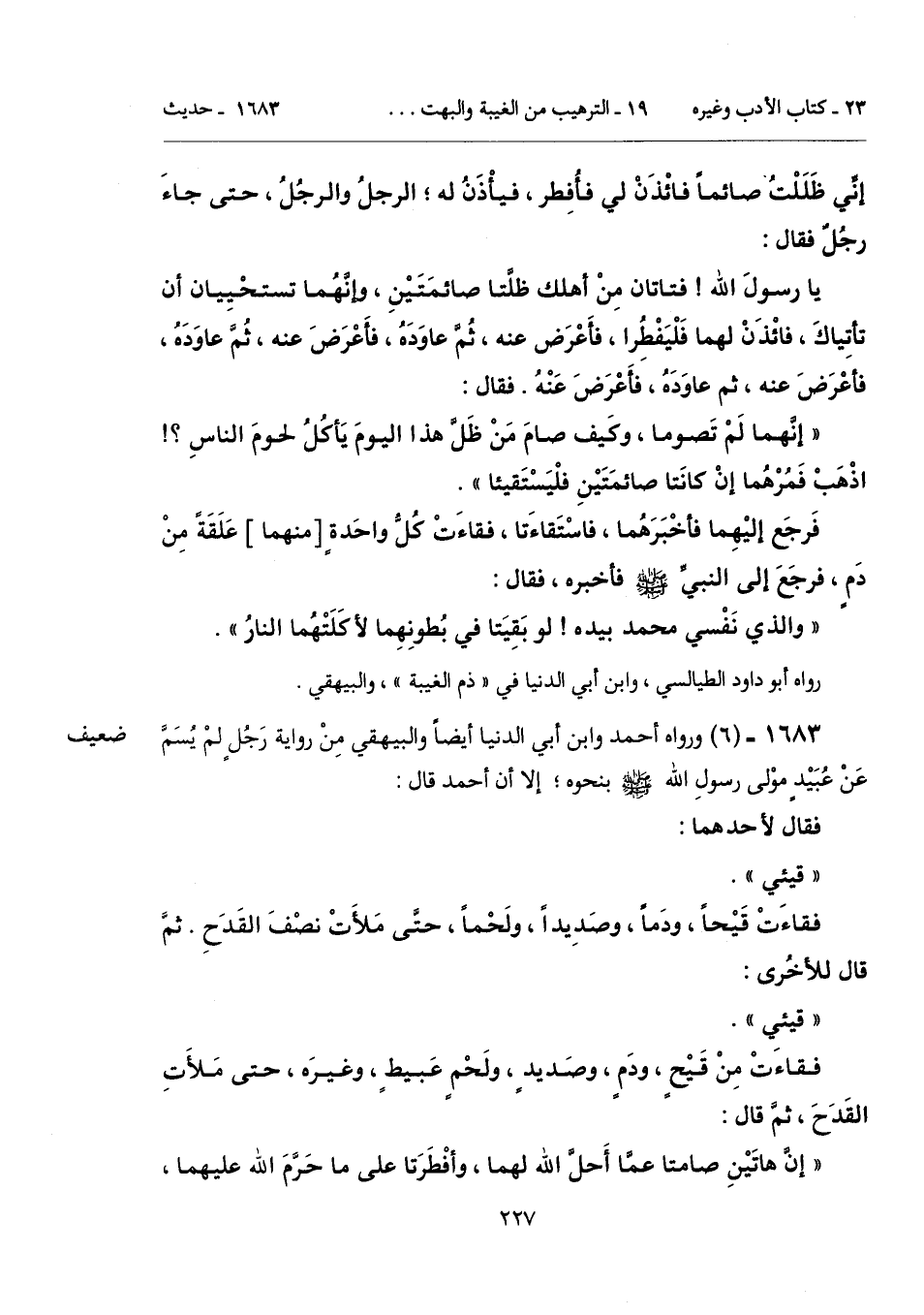 "إنَّهما لَمْ تَصوما، وكَيف صامَ مَنْ ظَلَّ هذا اليومَ يَأكُلُ لحومَ الناسِ؟!