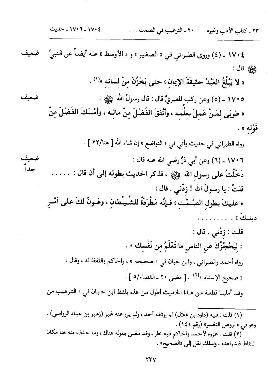 (¬1) قلت: فيه (داود بن هلال) لم يوثقه أحد، ولم يرو عنه غير (زهير بن عباد الرواسي).