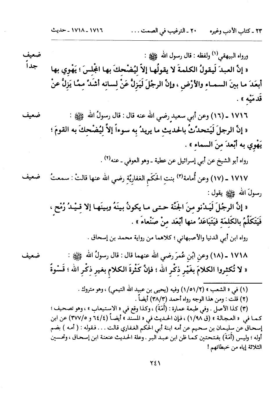 1717 - (17) [ضعيف] وعن أُمامة (¬3) بنتِ الحَكَمِ الغفاريَّةِ رضي الله عنها قالتْ: سمعتُ رسولَ الله - صلى الله عليه وسلم - يقول: