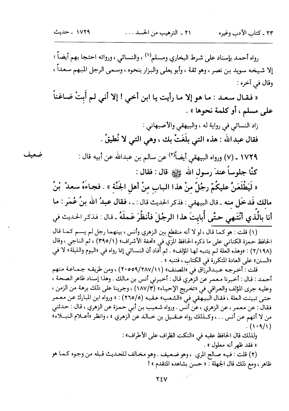 1729 - (7) [ضعيف] ورواه البيهقي أيضاً (¬2) عن سالم بن عبد الله عن أبيه قال: