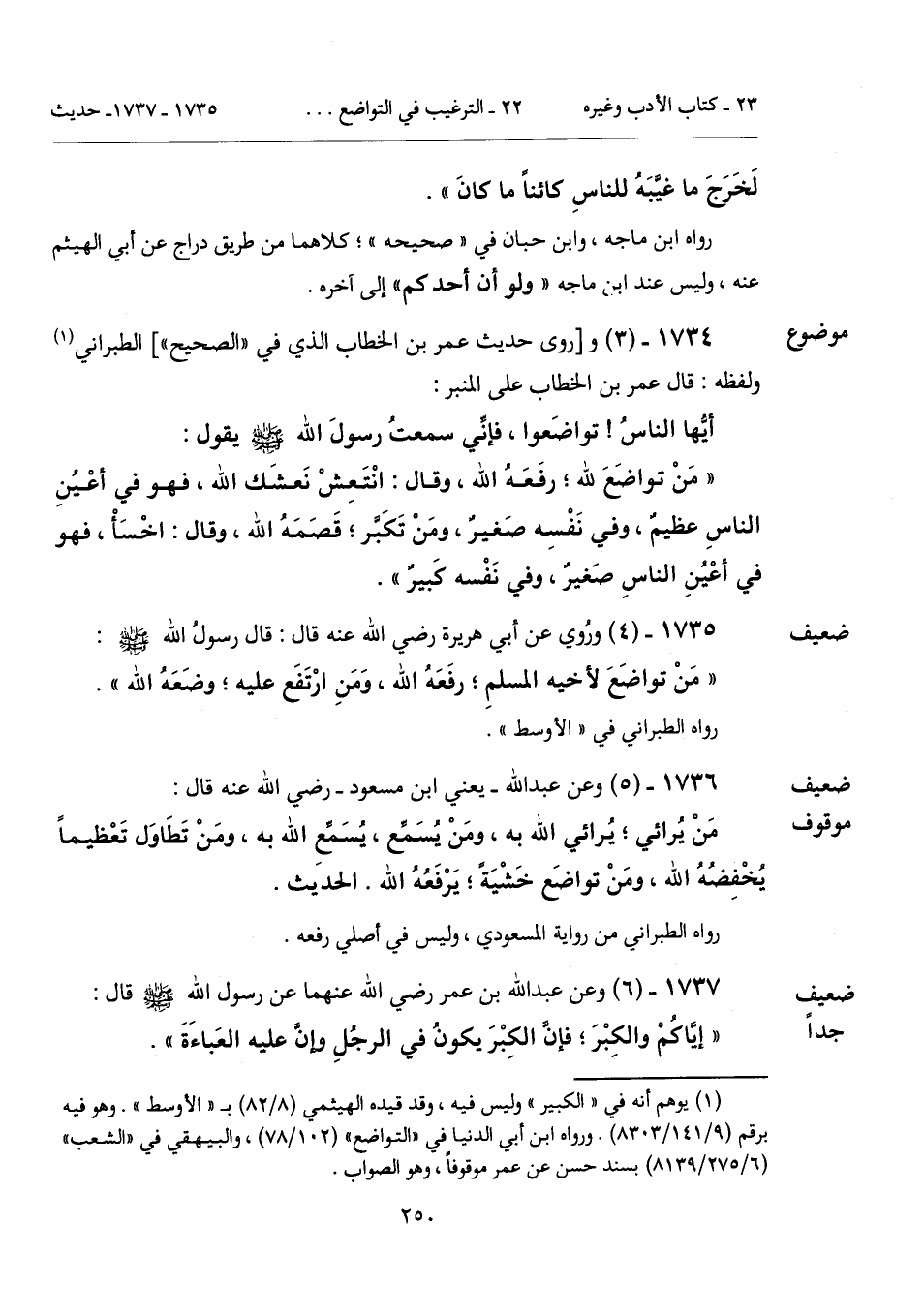 (¬1) يوهم أنه في "الكبير" وليس فيه، وقد قيده الهيثمي (8/ 82) بـ"الأوسط". وهو فيه برقم (9/ 141/ 8303). ورواه ابن أبي الدنيا في "التواضع" (102/ 78)، والبيهقي في "الشعب" (6/ 275/ 8139) بسند حسن عن عمر موقوفاً، وهو الصواب.