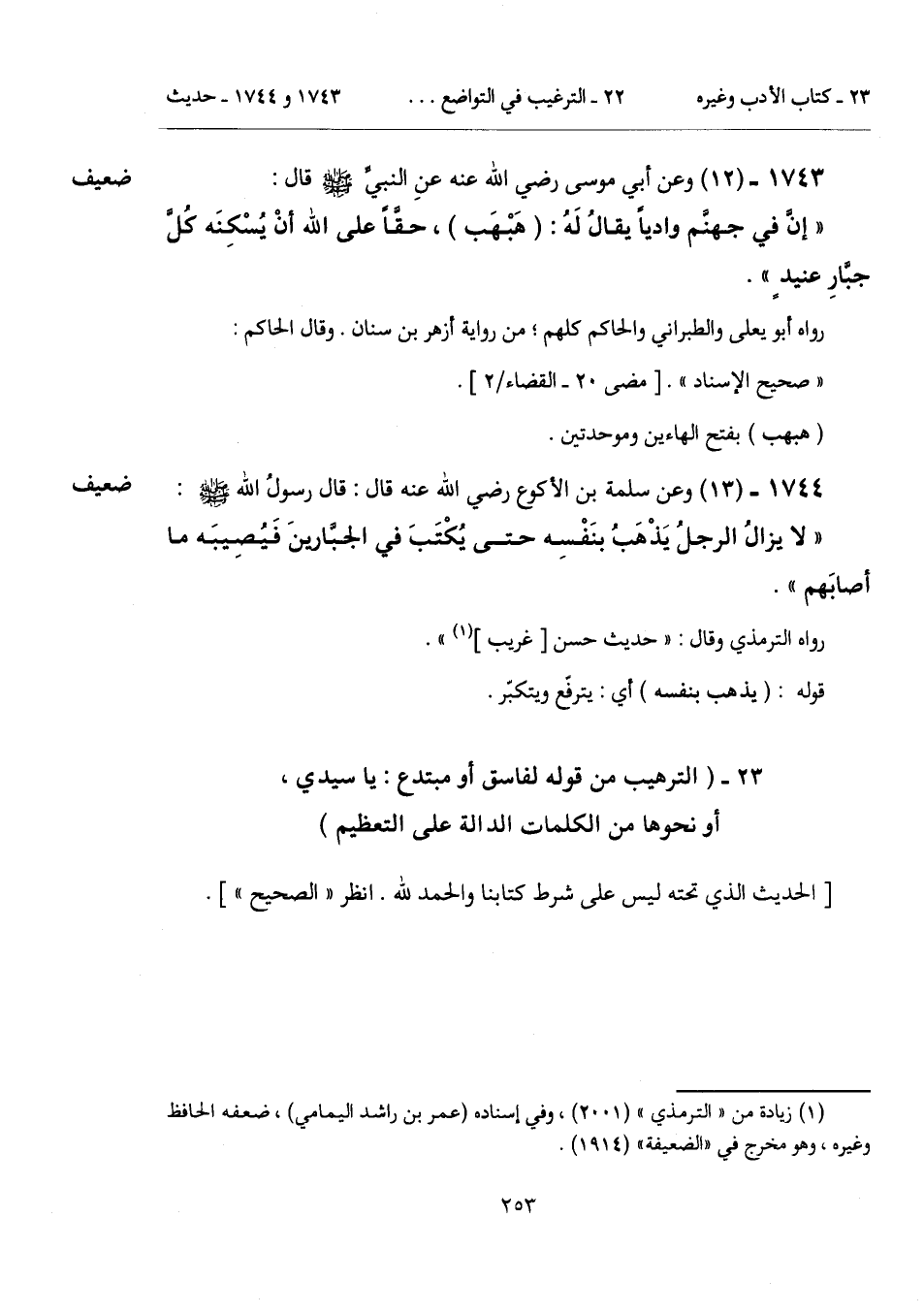 23 - (الترهيب من قوله لفاسق أو مبتدع: يا سيدي، أو نحوها من الكلمات الدالة على التعظيم).