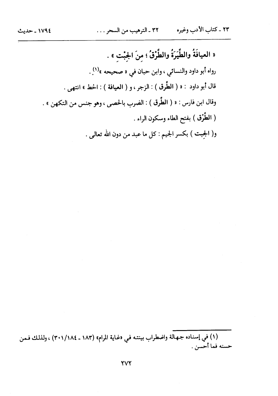 "العيافَةُ والطِّيَرَةُ والطَّرْقُ؛ مِنَ الجِبْتِ".