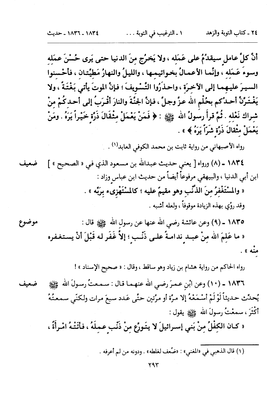 1834 - (8) [ضعيف] ورواه [يعني حديث عبد الله بن مسعود الذي في "الصحيح"] ابن أبي الدنيا، والبيهقي مرفوعاً أيضاً من حديث ابن عباسٍ وزاد: