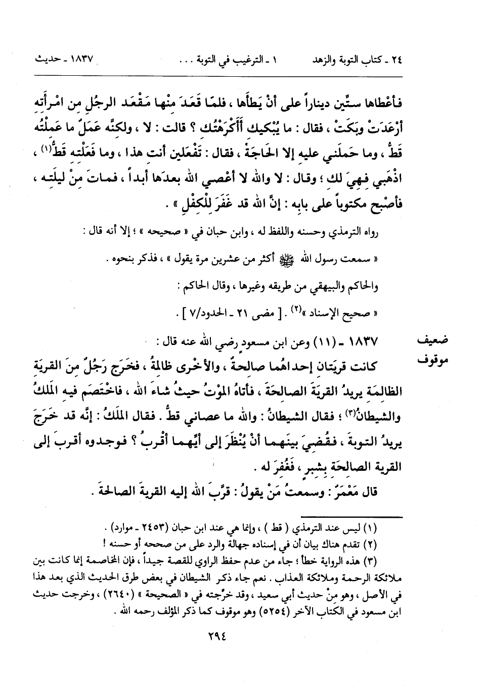 (¬3) هذه الرواية خطأ؛ جاء من عدم حفظ الراوي للقصة جيداً، فإن الخاصمة إنما كانت بين ملائكة الرحمة وملائكة العذاب. نعم جاء ذكر الشيطان في بعض طرق الحديث الذي بعد هذا في الأصل، وهو مِنْ حديث أبي سعيد، وقد خرَّجته في "الصحيحة" (2640)، وخرجت حديث ابن مسعود في الكتاب الآخر (5254) وهو موقوف كما ذكر المؤلف رحمه الله.
